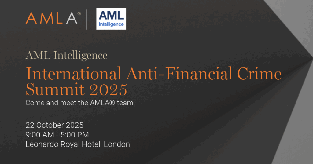 Come and meet the AMLA® team at the AML Intelligence International Anti-Financial Crime Summit on 22 October 2025 at the Leonardo Royal Hotel in central London.